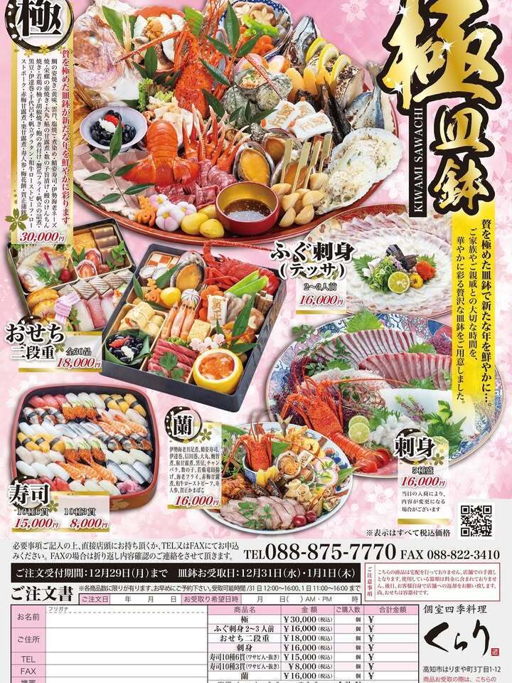12月31日 1月1日限定の皿鉢料理、お節のご案内です。